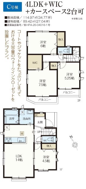 | 建築確認番号 | 第HPA-26-04014-1号、他 | 駐車スペース | 1台(カースペース) |
