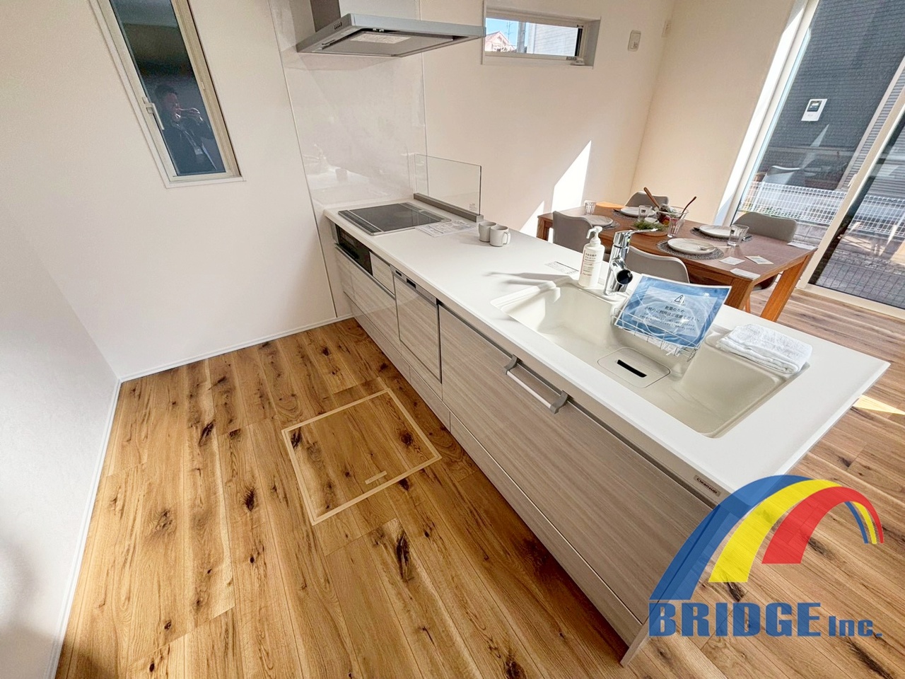 2号棟 料理をしながらリビング全体を見渡せるカウンターキッチン