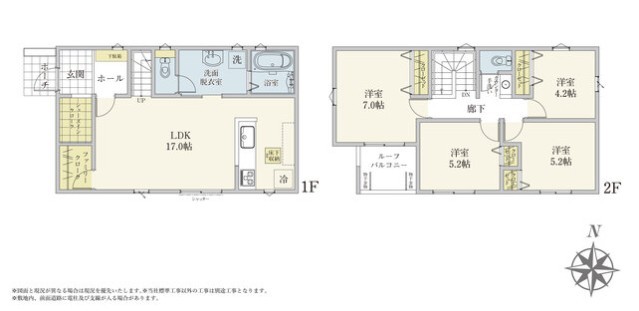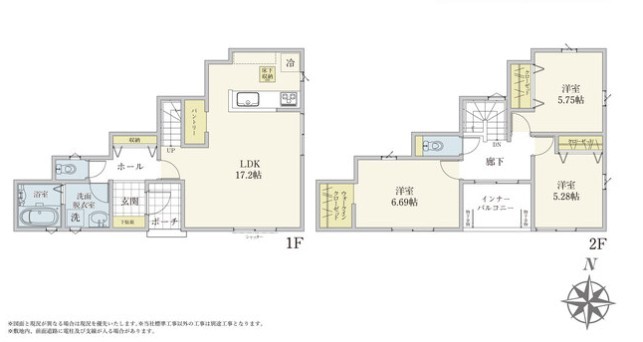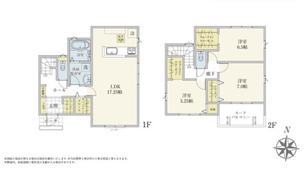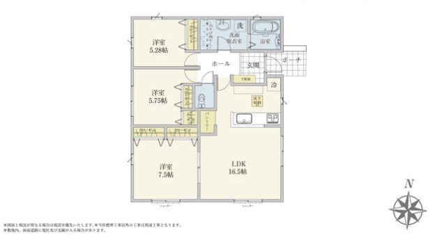 | 間取 | 3LDK~4LDK + パントリー、玄関ホール収納、WIC (LDK17.2帖、洋室6.75帖、洋室5.75帖、洋室5.28帖) | ||