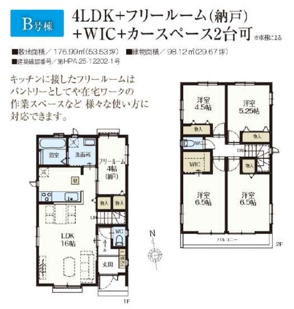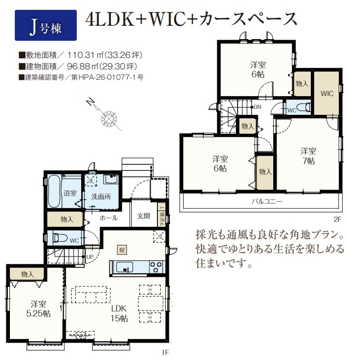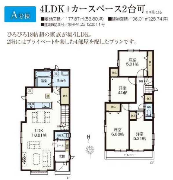 | 建築確認番号 | 第HPA-26-12201-1号、他 | 駐車スペース | 2台(カースペース) |