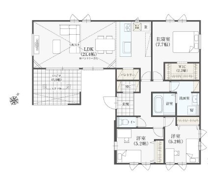 | 間取 | 3LDK + パントリー、SIC、WIC (LDK21.4帖、洋室7.7帖、洋室5.2帖、洋室5.2帖) | ||