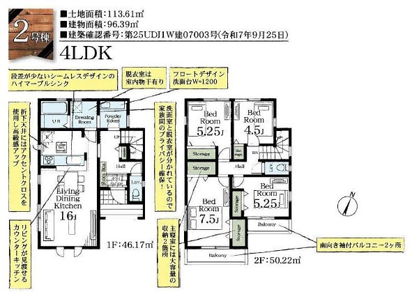 | 建築確認番号 | 第25UDI1W建07002号、他 | 駐車スペース | 2台(カースペース:並列) |