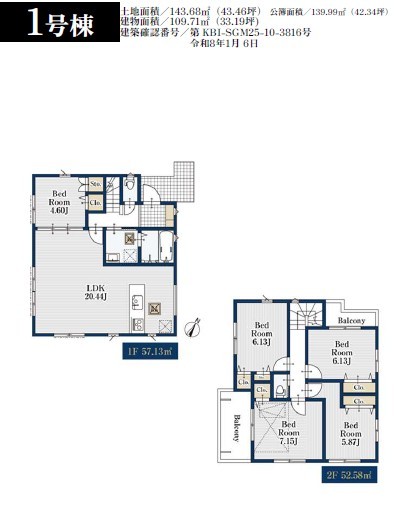 | 間取 | 5LDK (LDK20.4帖、洋室7.1帖、洋室6.1帖、洋室6.1帖、洋室5.8帖) | ||