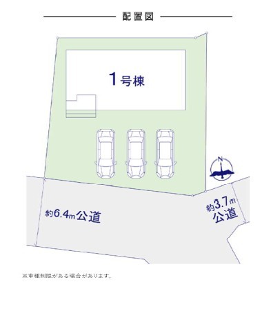 - 駐車3台可能で、広々前面道路でゆったり駐車ができます。
