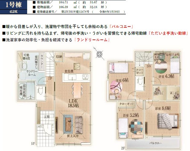 | 建物面積 | 105m² ~ 106m² 公簿 | ||