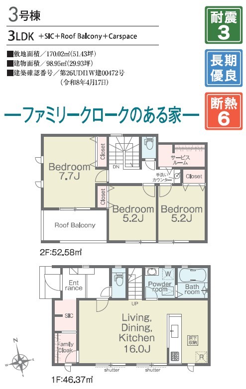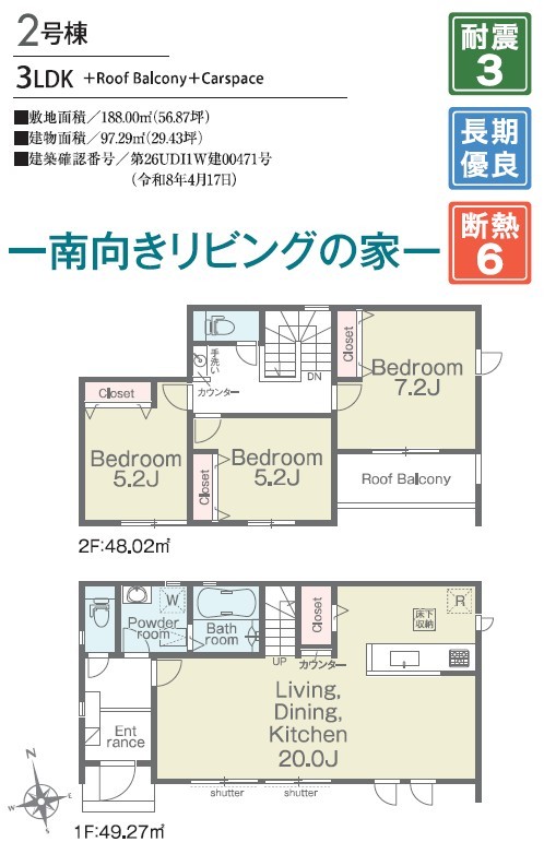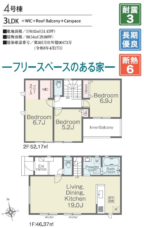 | 建築確認番号 | 第26UDI1W建00470号、他 | 駐車スペース | 2台(カースペース:縦列) |
